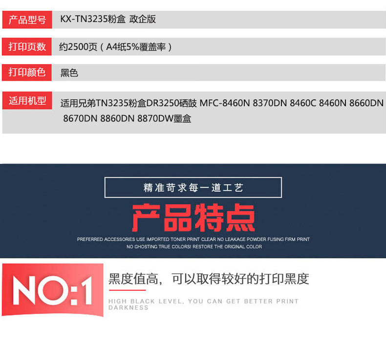 凱欣KX-TN3235 適用 兄弟TN3235粉盒 MFC-8460N 8370DN 8460C 8460N 8660DN 8670DN 8870DW粉盒 全國(guó)統(tǒng)一價(jià):218元